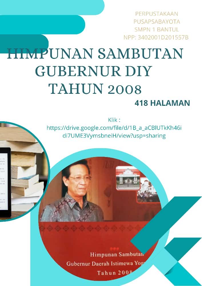 Himpunan sambutan Gubernur DIY Tahun 2008, sebanyak 418 halaman dalam bentuk digital bisa diakses melalui tautan : https://drive.google.com/file/d/1B_a_aCBlUTkKh46idi7UME3VymsbneiH/view?usp=sharing