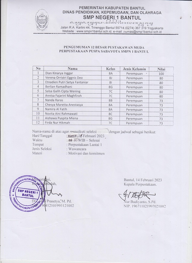 PUSPASABAYOTA - SMP NEGERI 1 BANTUL