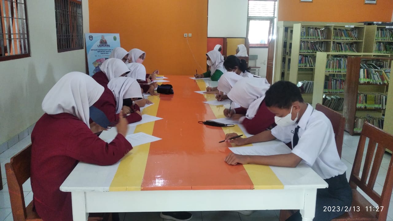 Senin, 13 Februari 2023, sekitar 23 siswa mengikuti tes tertulis seleksi Pustakawan Muda di ruang sirkulasi perpustakaan lantai 1. Dari tes tertulis tersebut akan diambil 12 finalis yang nantinya akan mengikuti tes wawancara.