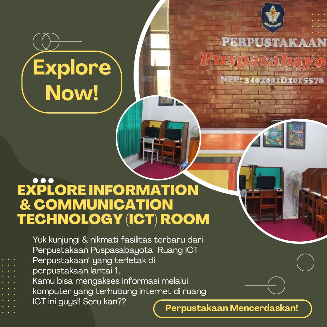 Perkembangan teknologi membawa berbagai perubahan dan perbaruan bagi kehidupan kita. Hampir seluruh bidang kehidupan tidak terlepas dari penggunaan ICT. Untuk itu, perpustakaan Puspasabayota menghadirkan fasilitas terbaru demi memenuhi kebutuhan civitas akademikanya di bidang teknologi informasi, yaitu Ruang Information & Communication Technology (ICT). Ruangan ini terletak di perpustakaan lantai 1, bersebelahan dengan ruang sirkulasi dan sirkulasi. Baik guru, karyawan, maupun siswa dapat memanfaatkan fasilitas ruang ICT tersebut.